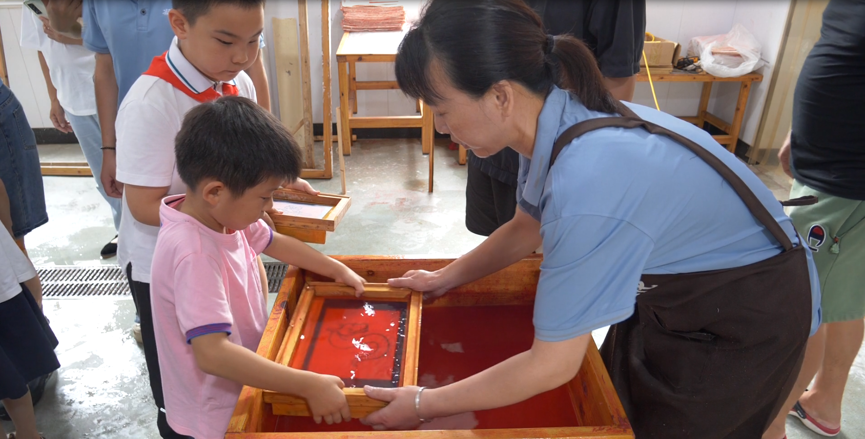 徽州楮皮紙制作工藝精湛,源遠流長,是徽州文化乃至中華文化的重要瑰寶之一、是中國手工紙的巔峰之作。眼下正值暑假,休寧縣的黃山市凝霜文化發(fā)展有限公司的徽州楮皮紙古法造紙車間迎來了一批批前來研學體驗的學生團隊,休寧這座“狀元城”掀起一波“非遺熱”。 撿皮、打漿、抄紙、烘紙