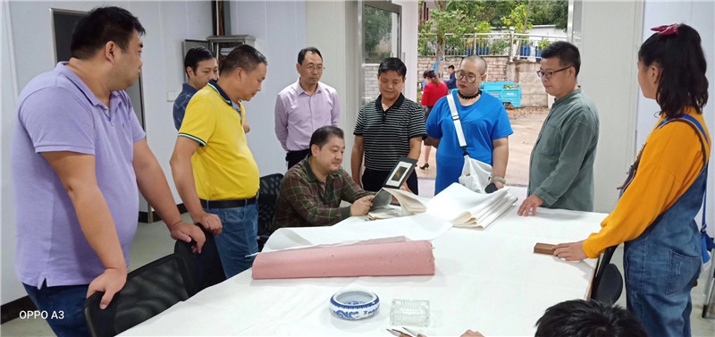 感謝休寧縣書法協(xié)會主席胡社文陪同安徽省青年書法家協(xié)會主席王亞洲等藝術(shù)家到公司指導,體驗徽州楮皮紙傳統(tǒng)技藝。